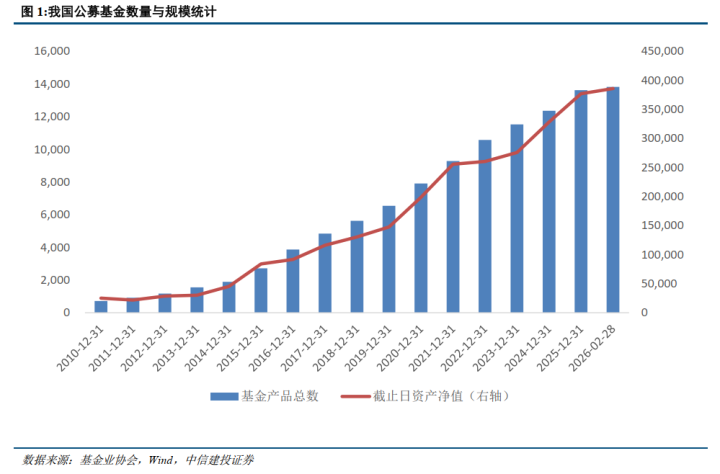 频年来我国公募基金总限制抓续攀升,把柄基金业协会最新涌现数据,摈弃2026年2月底,公募基金居品总和接近14000只,合座份额达到32.77万亿份,基金钞票净值达38.61万亿元。基金份额当月增多8620.27亿份,相较旧年同期同比增长11.72%,环比增长2.70%;基金钞票净值当月增多8397.78亿元,初次冲突38万亿大关,相较旧年同期同比增长19.79%,环比增长2.22%,完满贯穿11个月正增长。