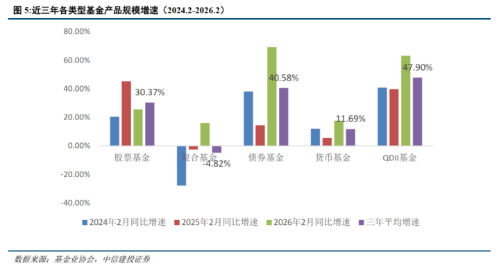 自然短期来看,受春节假期及国际地缘政事冲突等多重身分扰动,2月的主要限制增长最主要聚焦于低风险高流动性的货币型基金,但从更长的时期区间来看,货币基金的限制自然仍然保抓结识增长,但限制增速与股票型、债券型居品比较较为缓慢。